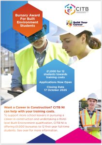 The CITB NI £1,000 Built Environment Student Bursary Award 2025 is now open for applications.