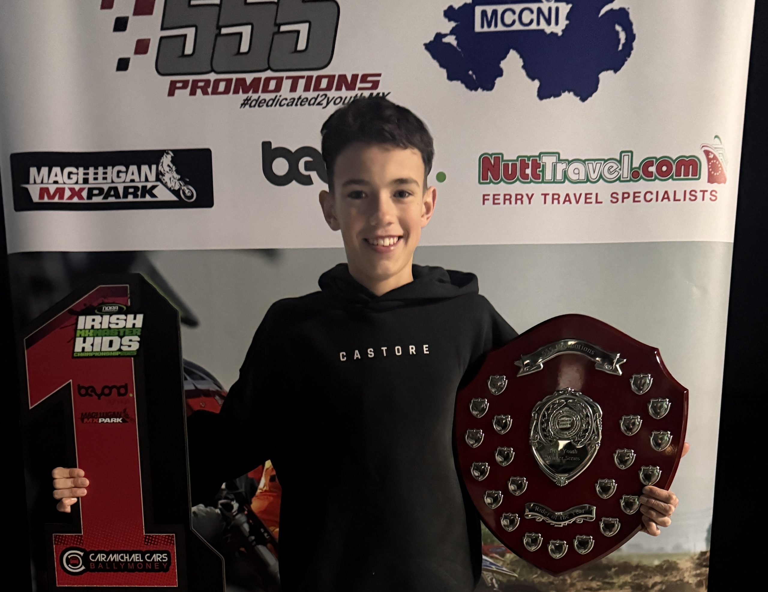 Max attended a prize-giving ceremony on Friday evening, where he collected his awards for winning the 65cc Irish Masterkids Championship last year and the 85cc Small Wheel Winter Series, which concluded last weekend.