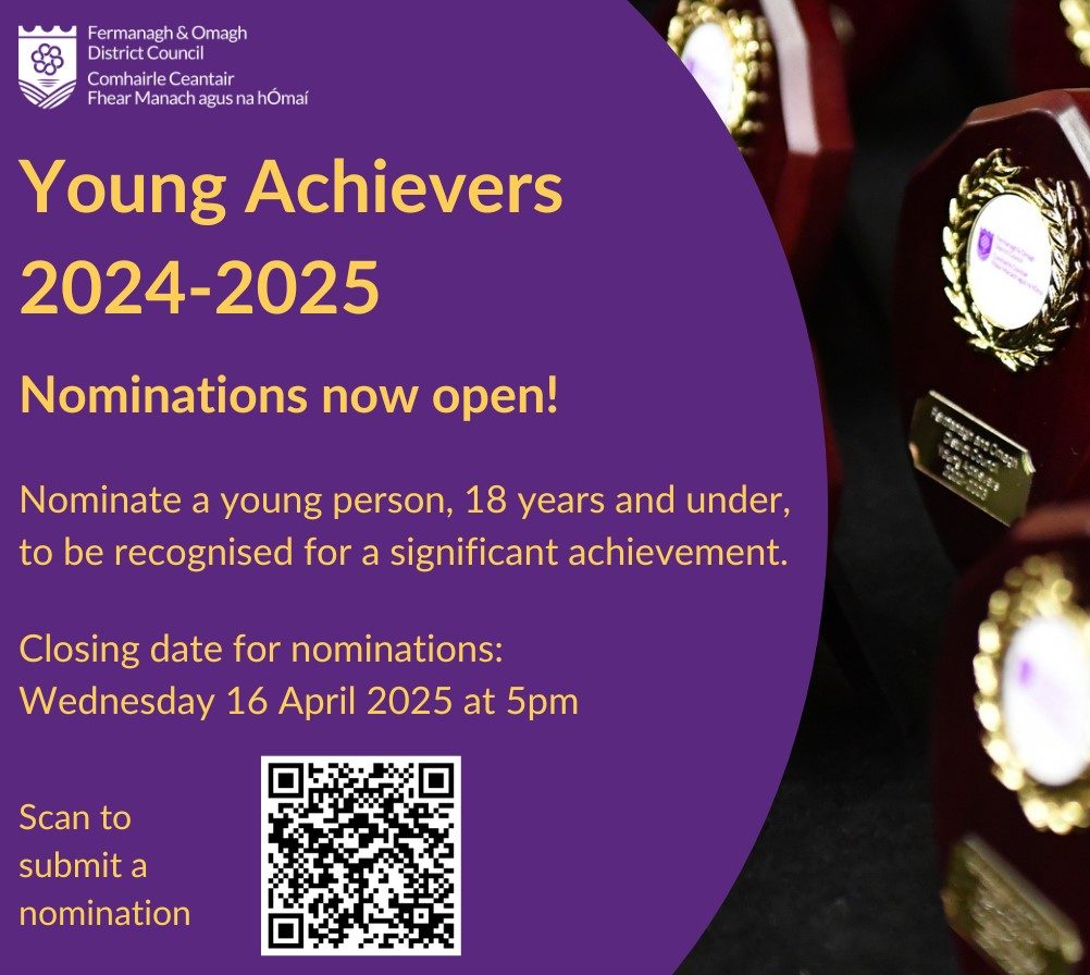 We are asking the residents of Fermanagh and Omagh District Council to nominate young people (aged 18 and under) for this year’s awards by completing the nomination form in the link below.