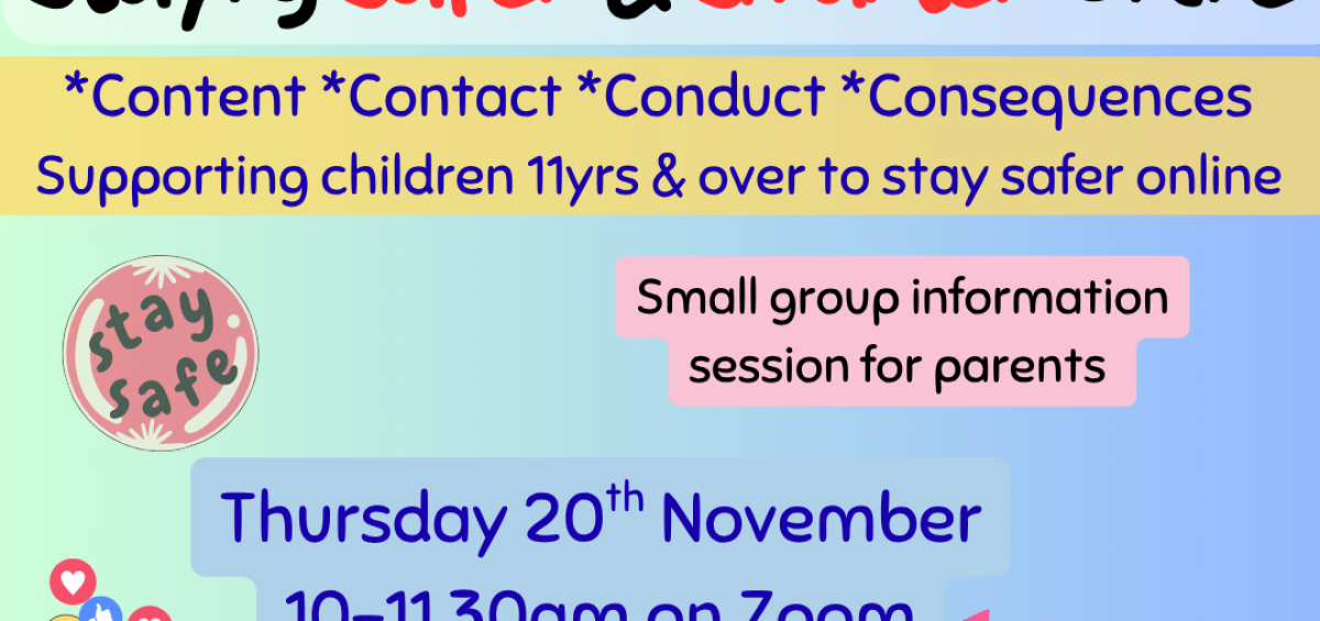 This free small group session is designed to help parents and carers support children aged 11 and over to stay safe in the digital world. The workshop will take place on Thursday 20th November, 10am-11.30am on Zoom.