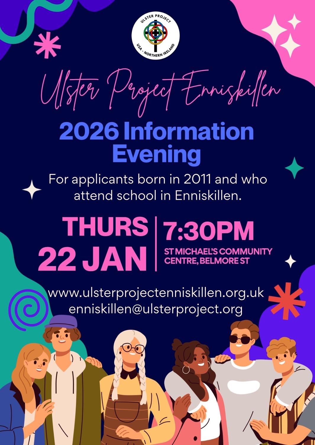 The Ulster Project are accepting applications from young people born in 2011 and attending school in Enniskillen. They are having an information evening for young people, parents and guardians interested in hearing more about the project and application process.