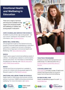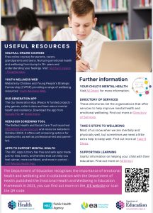 Pleas find below a flyer from the Department of Education which highlighted the resources available to our school community, including the Being Well, Doing Well programme in which school is currently involved.